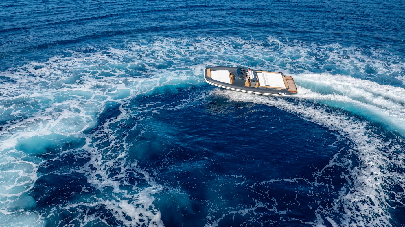 Difícil no enamorarse a primera vista del nuevo Halma Rib HR30, con su librea gris, los cojines blancos y la teca a vista el golpe es definitivamente emocionante.