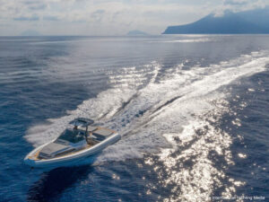 Magazzù MX-13 Gran Coupé en navegaciónNavegamos alrededor de 30 nudos y, en unas dos horas, recorremos las 60 millas que separan Filicudi de Palermo para aterrizar cerca de la famosa Canna, donde paramos para los disparos oportunos. Navegar a bordo de un Magazzù no tiene comparación con nada más, el tiempo ha pasado en un momento y ninguno de nosotros está cansado. El planeo del Magazzù MX-13 Gran Coupé se caracteriza por el máximo confort, navegando sin sacudidas, sin chocar con las olas. Una experiencia fantástica.