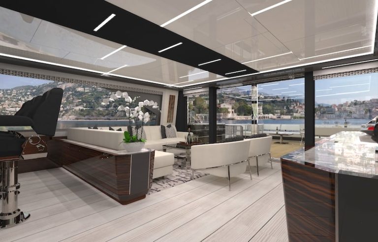 Como es habitual en los yates firmados por Ocean Alexander, el 84 R también destaca por su elegante decoración y el uso de materiales de alta calidad que incluyen detalles en madera pulida y satinada, acabados pulidos y pisos y tapas de piedra Cambria.